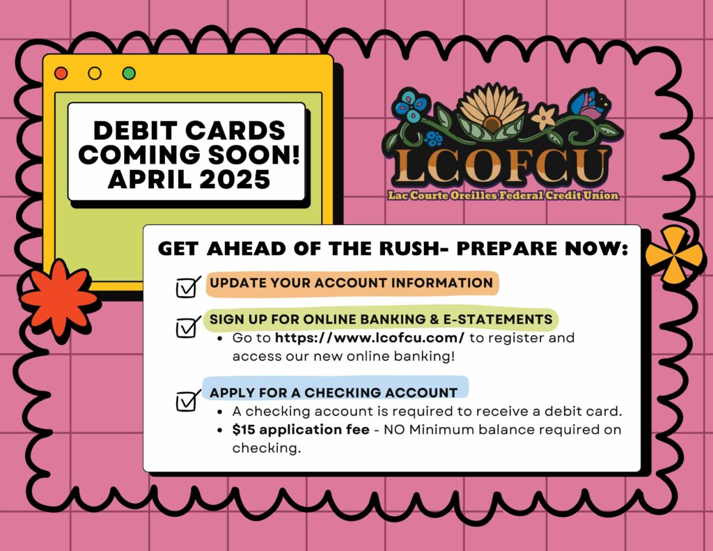 Debit Cards and Online Banking are now available for LCO Federal Credit Union account holders.