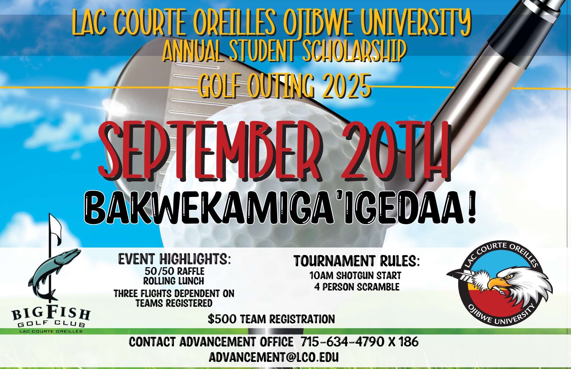 Contact Advancement Office 715-634-4790, ext 186 or advancement@lco.edu