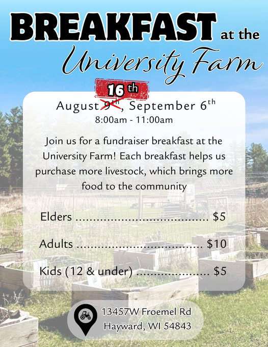 Join us for a fundraiser breakfast at the University Farm! Each breakfast helps us purchase more livestock, which brings more food to the community.