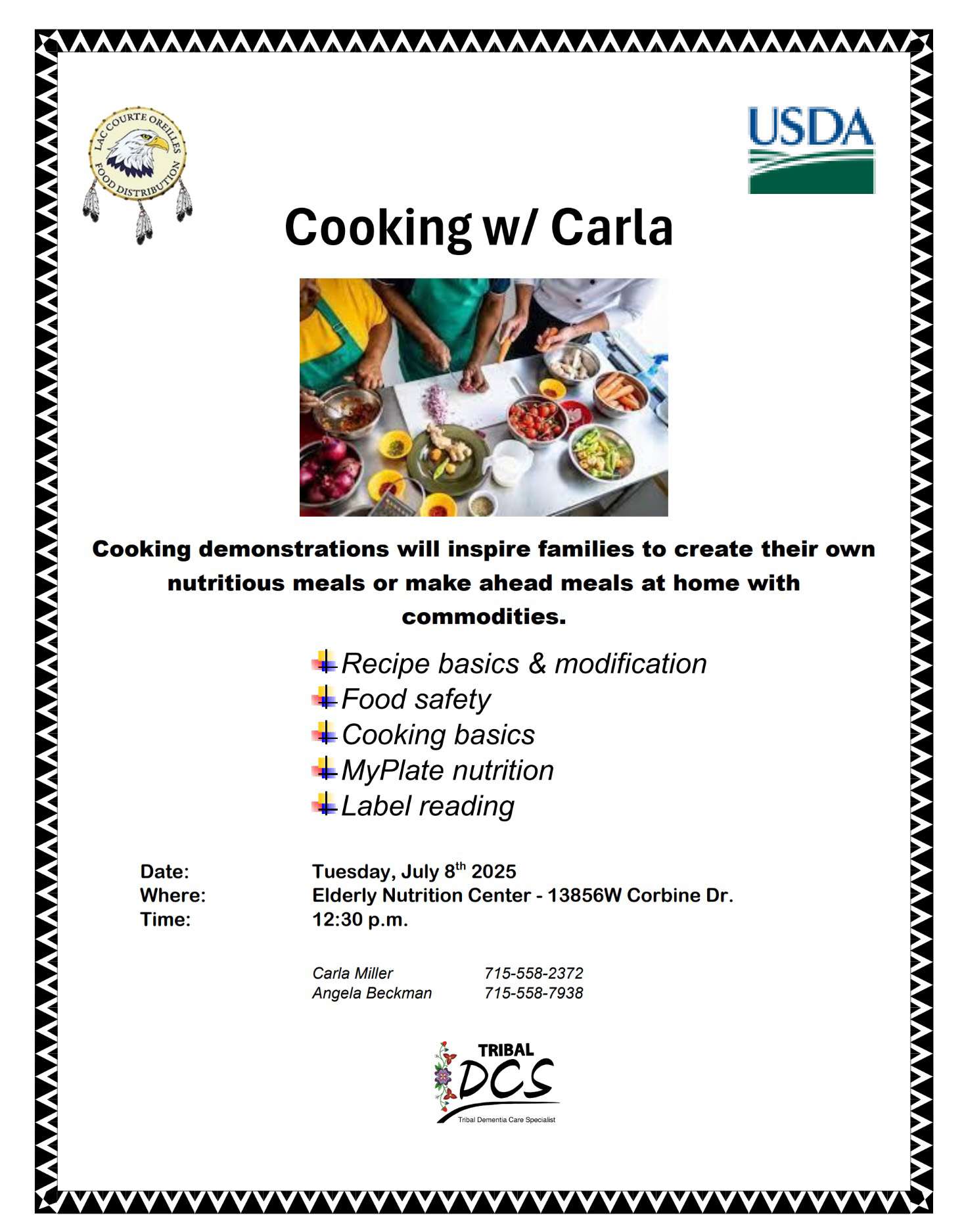 Cooking demonstrations will inspire families to create their own nutritious meals or make ahead meals at home with commodities.