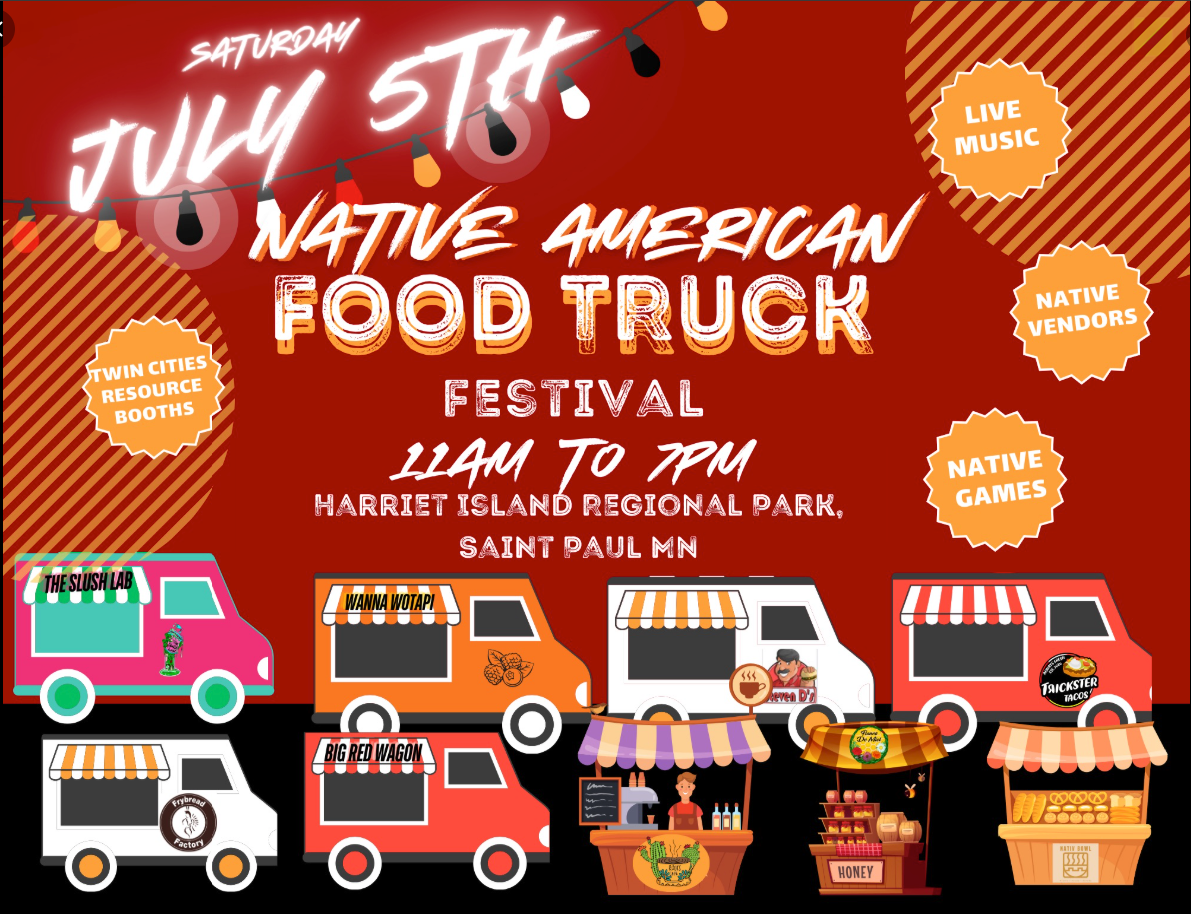 Celebrate with Minnesota’s First Native American Food Truck Festival on Saturday July 5th 2025 at the beautiful Harriet Island Regional Park!!