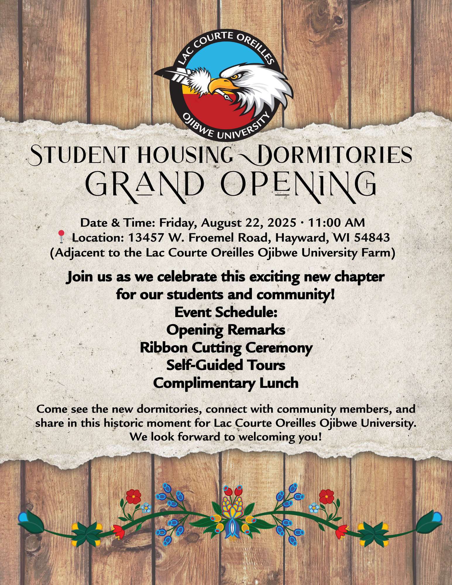 Come see the new dormitories, connect with community members, and share in this historic moment for LCOOU.