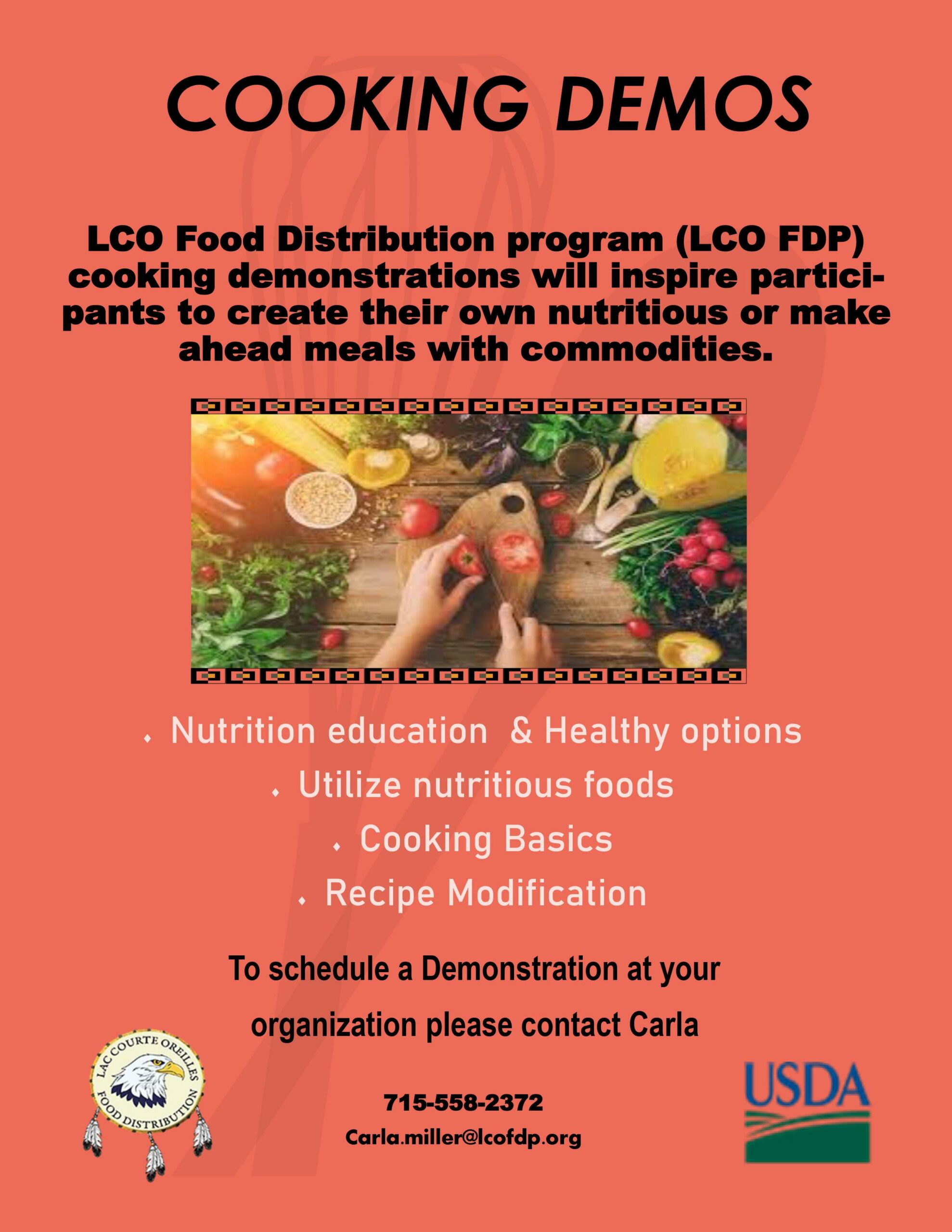 The LCO Food Distribution (FD) program would like to invite programs and services to schedule a cooking demonstration.