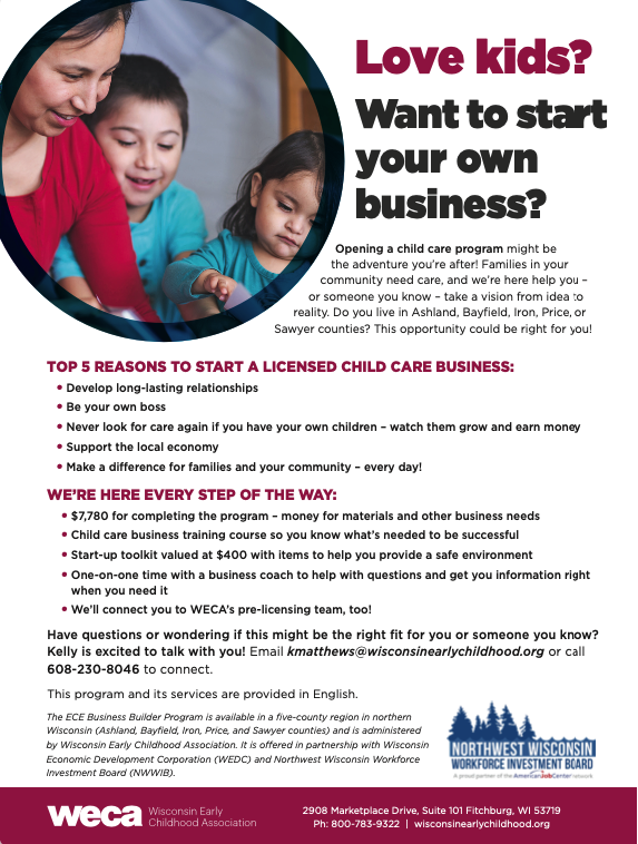 Please see the flyer attached to learn more about establishing a licensed Child Care business.