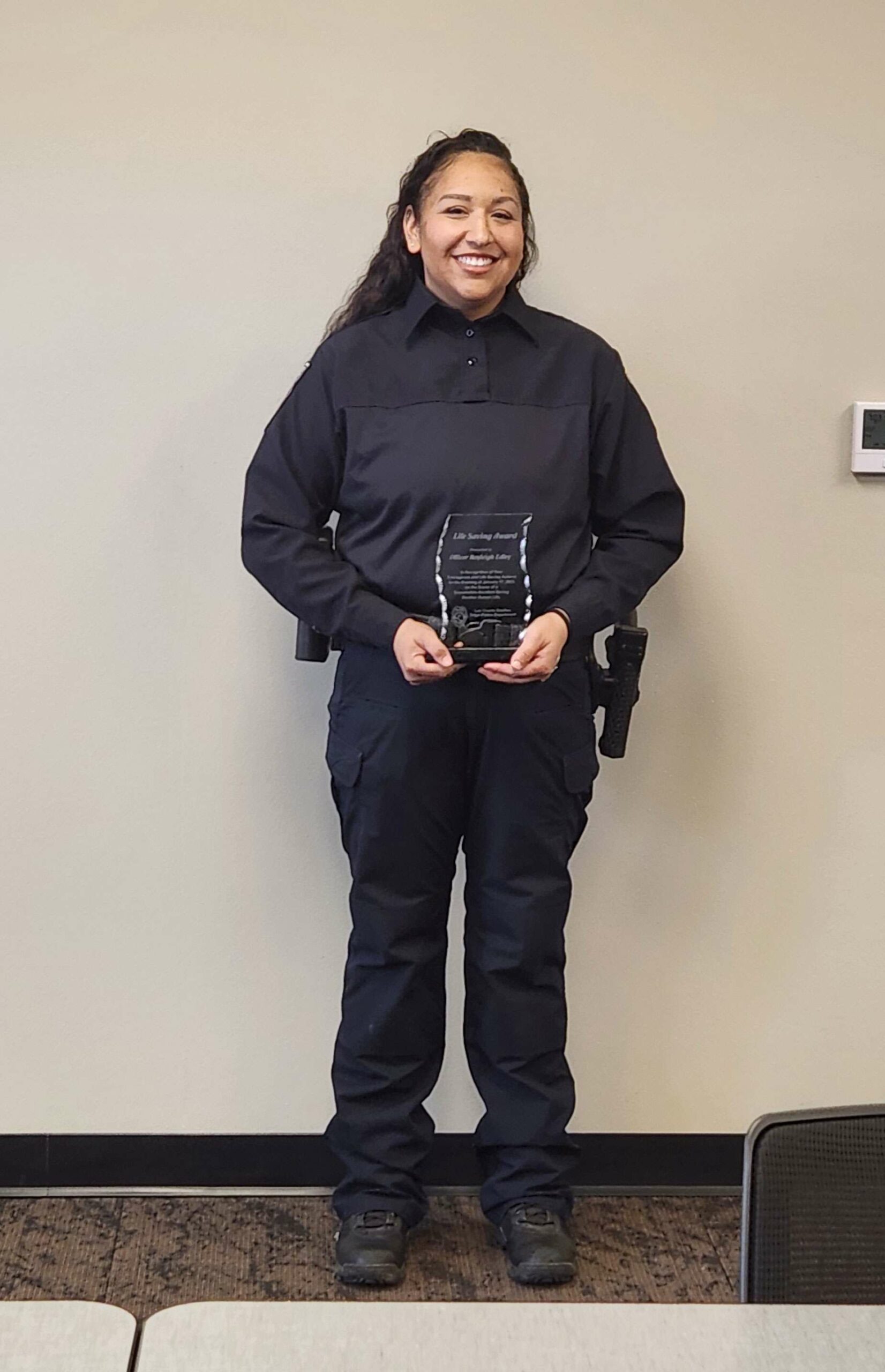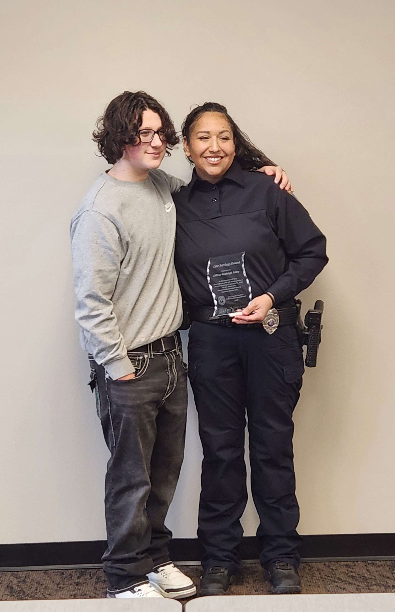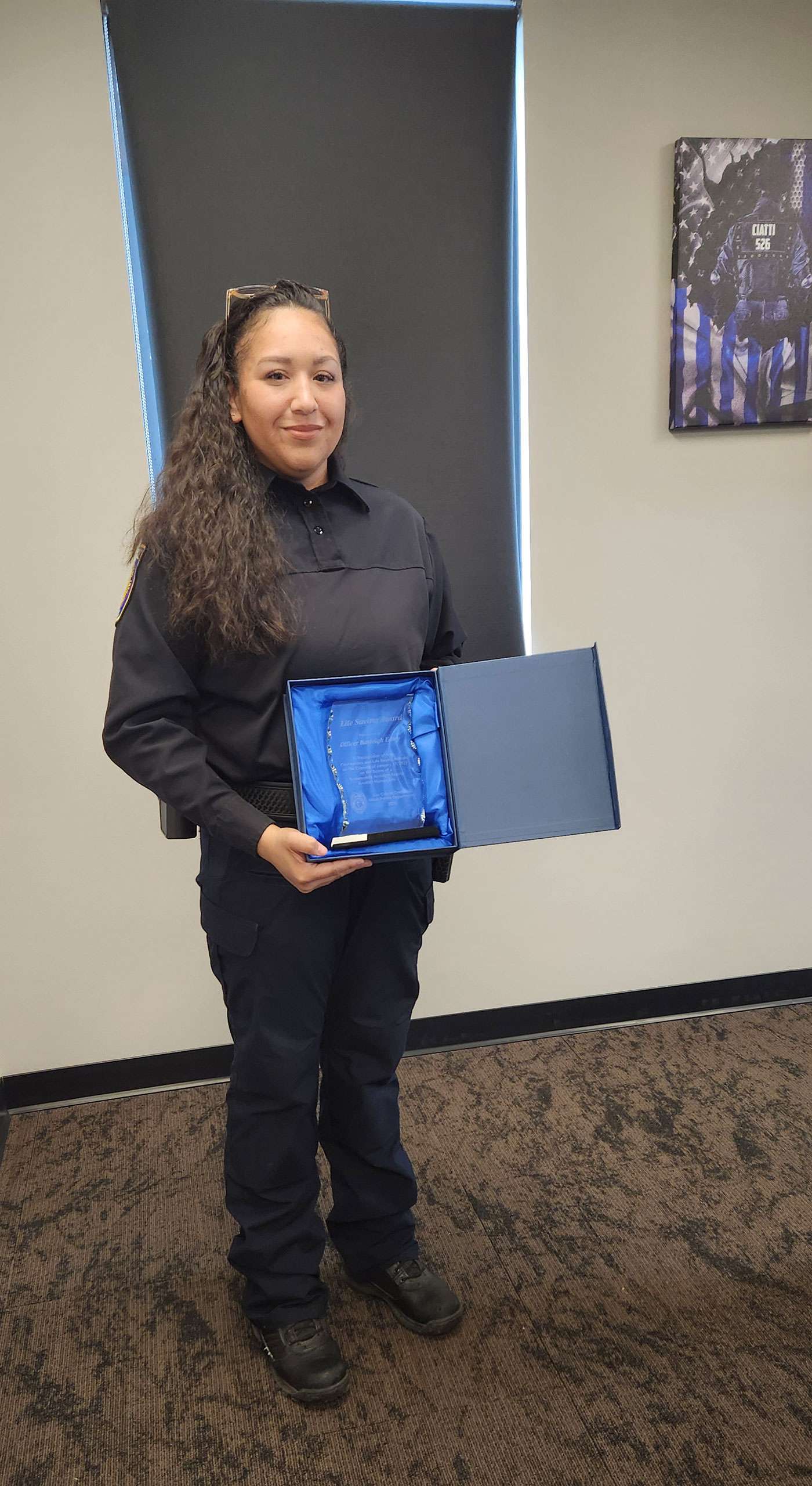 Officer Edley, your bravery and steady hands have made a lasting difference in more ways than you will ever know. We thank you for your service, your strength, and your heart. It is with deep admiration that we present you with this life saving award.”